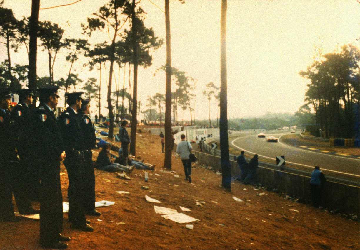 States without stopping. But they did it- they won, and I found myself running headlong across the track along with many crazed fans - like a Rolling Stones concert - when the battered & dirty Purple and White Jaguar finally came to a halt, my knees were against the left hand side of the car. Jan Lammers climbed out and stood on the roof- with his helmet in his hand. Champagne seemed to be falling out of the air - I didn't see anyone running with a champagne bottle, so it was unclear where it was coming from, No matter- it was perfect - and remains one of the most incredible experiences of my whole life. Glimpse