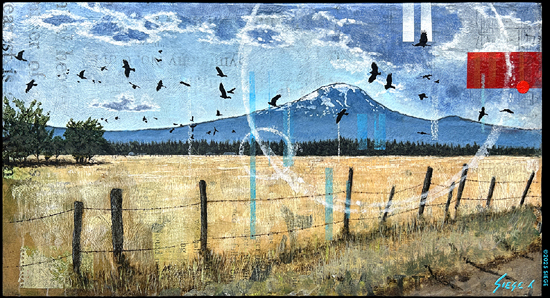 recycled cedar and stretching my own canvases, I add distressed paper