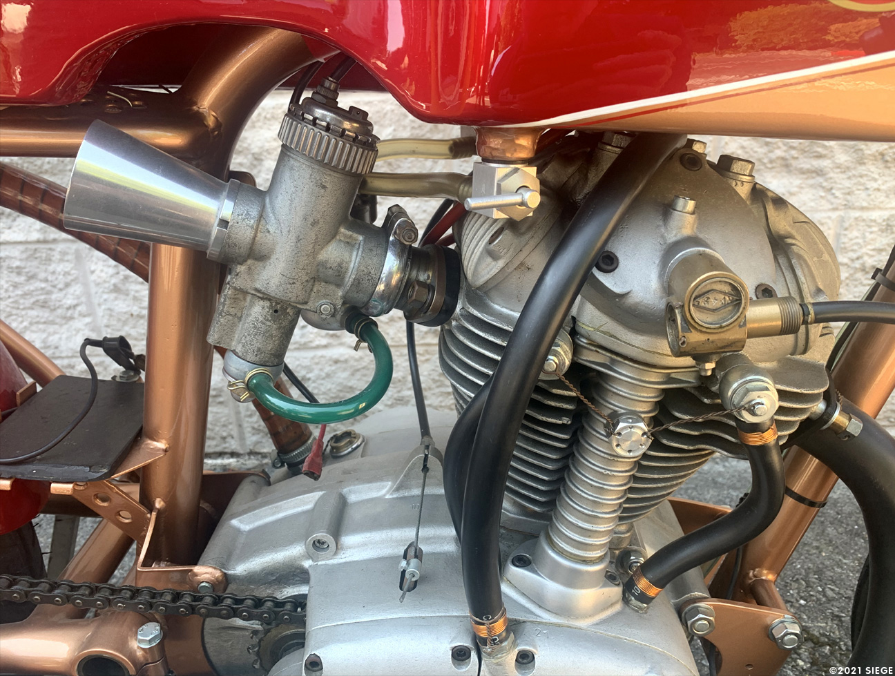 As the Villa brothers were factory riders, this combination of components probably occurred at the factory prior to the bikes shipping to Argentina. So while not an original 250 F3, the provinance is nonetheless extremely interesting, is this bike was possibly a 175 F3, raced by the Villa brothers between 1960 and 1962, at some stage factory fitted with a 250 F3 engine. |