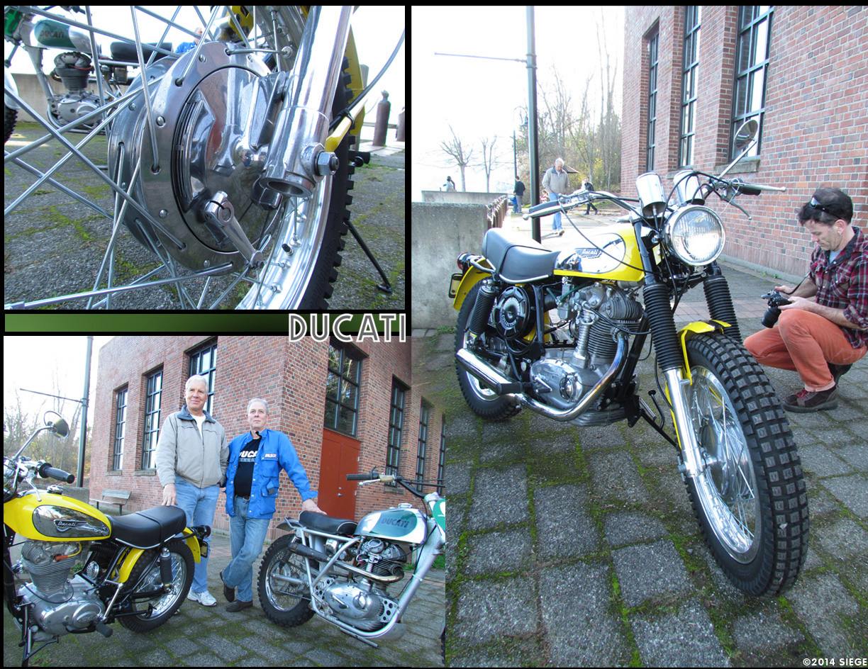 above: Gary Lewis with his Ducati 450 Jupiter, left, and Mike Budschat, right with the Ahrens Framed Desmodromic 450 Racer